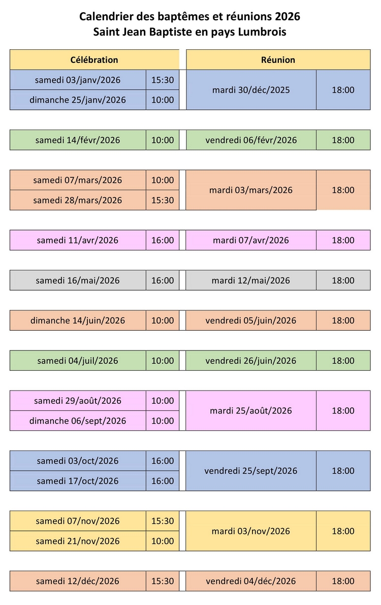 La célébration des baptêmes se déroule à Lumbres. Toutes les réunions de préparation